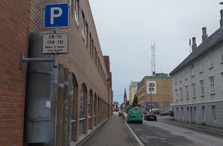 Gateparkering ved siden av Markedet for raske ærend i sentrum. Makstid 2 timer.