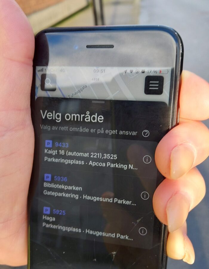 Når du bruker en betalingsapp som EasyPark for å betale parkering, bør du aldri stole blindt på kartlokasjonen på telefonen din. Posisjonen kan være unøyaktig, og det kan føre til at du velger feil stedskode. Dersom du betaler med feil stedskode, registreres ikke betalingen på det området du faktisk har parkert bilen. Ved kontroll vil trafikkbetjenten da få opp en rød markering når registreringsnummeret skannes – selv om du har betalt.